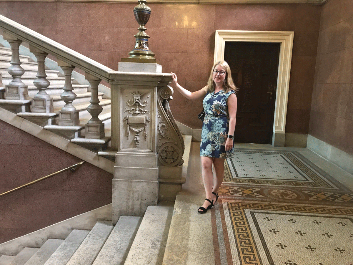 Vienna On to Vienna. Travelling through the outskirts of the city it is much like any other with large estates, and offices mixed with transport hubs. But on getting to the central part of the city know as the 1st district the spectacular buildings were surrounding me. There were richly carved figures on many building combined with gilded features and magnificent door ways. The combination of green parks and squares gave the buildings the perfect settings. The style was mostly traditional here, but the interiors were often very contemporary. The materials used were silks, and plush patterned velvets. But the colours were neutral with the occasional accent colour, aubergine being my personal favourite and also pale lime green. The use of textures and well shaped furniture was very apparent in the interiors, with the homes feeling warm and relaxed with a defined style.